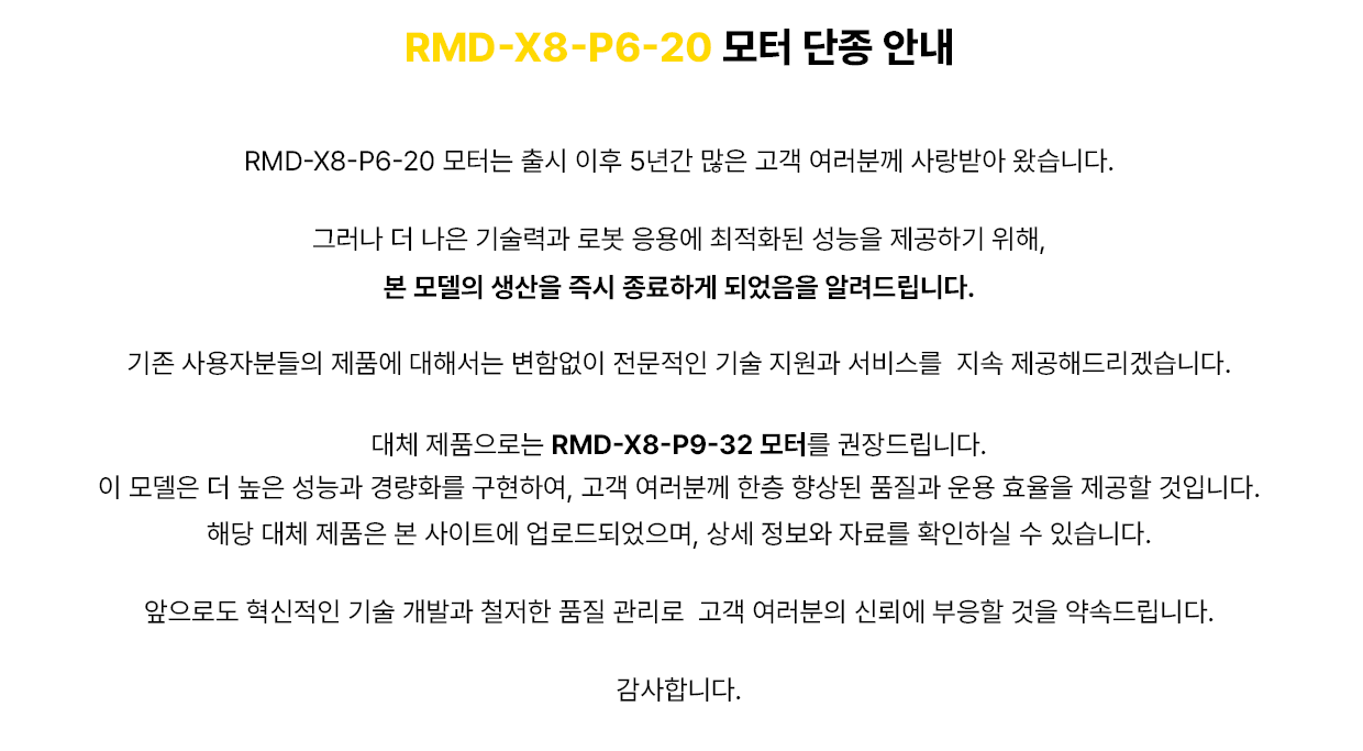 RMD-X8-20 모터 생산이 종료됩니다.