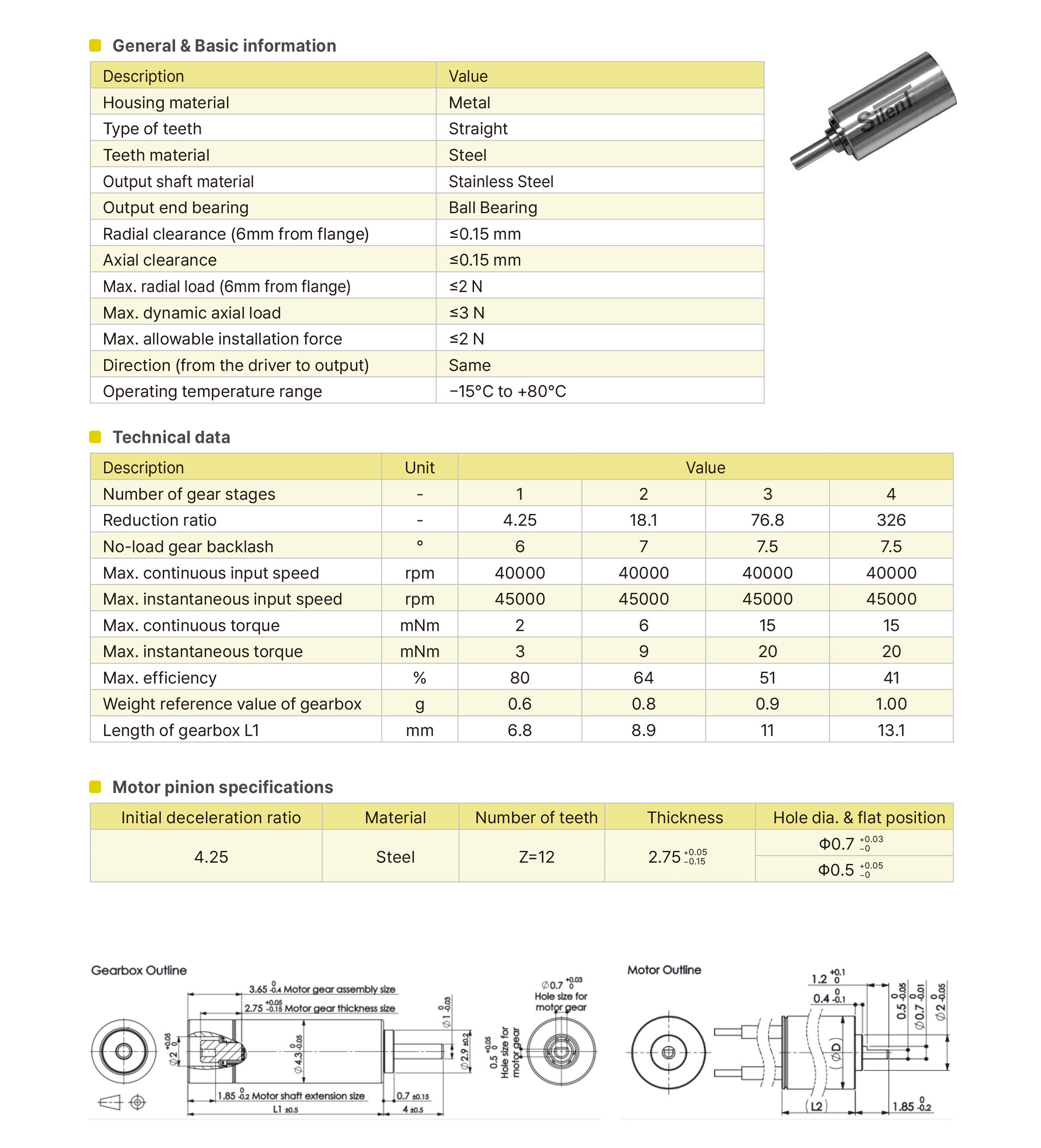 Radial Clearance (2mm from flange): ≤0.15mmAxial Clearance: ≤0.15mmMaximum Radial Load (2mm from flange): ≤2NMaximum Dynamic Axial Load: ≤3N