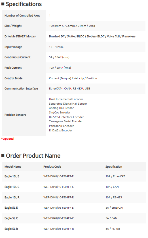 | Eagle 5L E | WER-D048/05-FS04F7-E | 5A / EtherCAT |