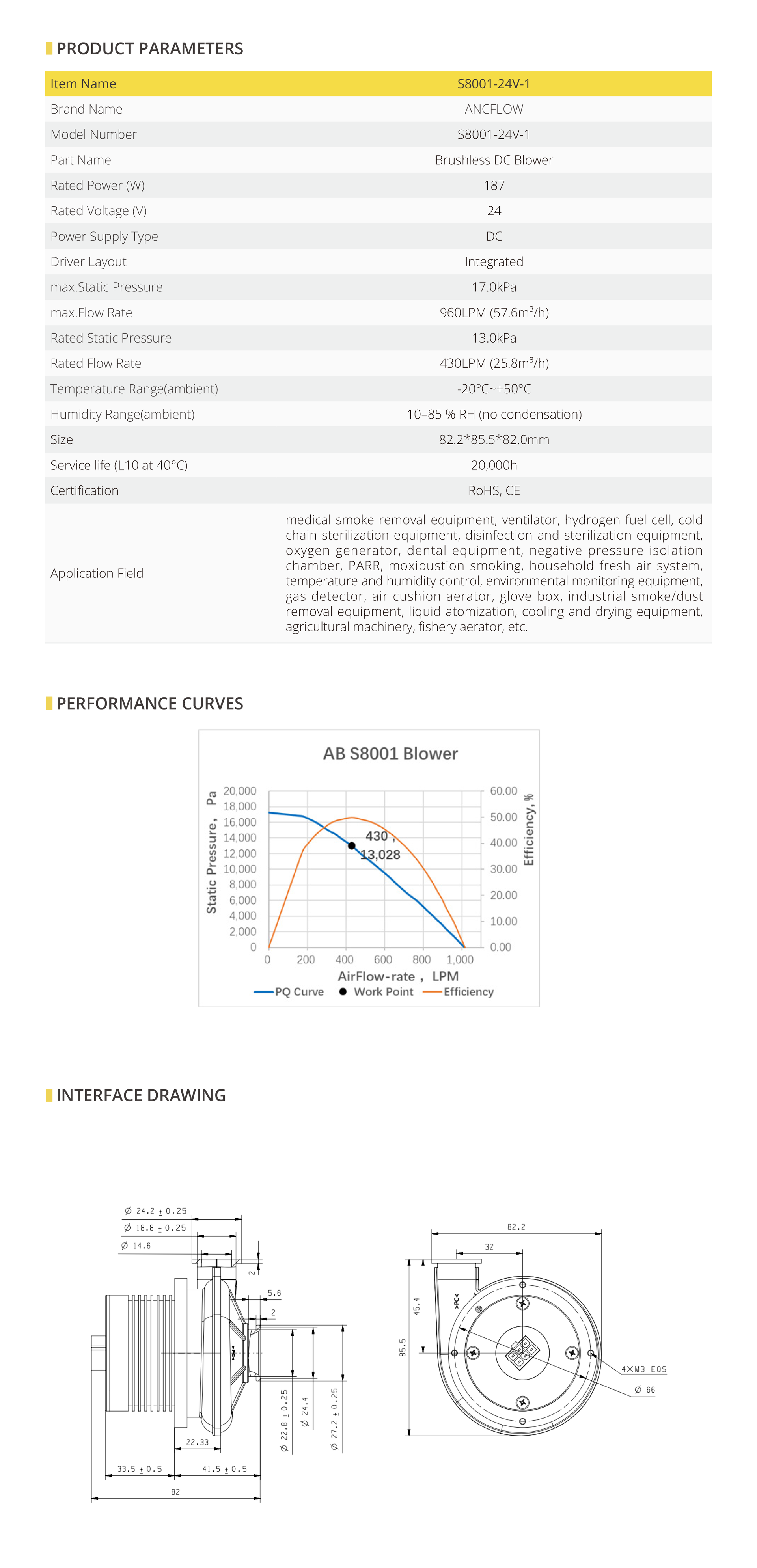 Upper cover, Lower cover: PC, Impeller: PA, Motor part: Aluminum Alloy